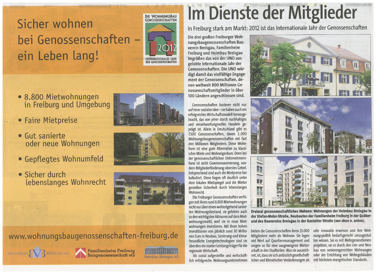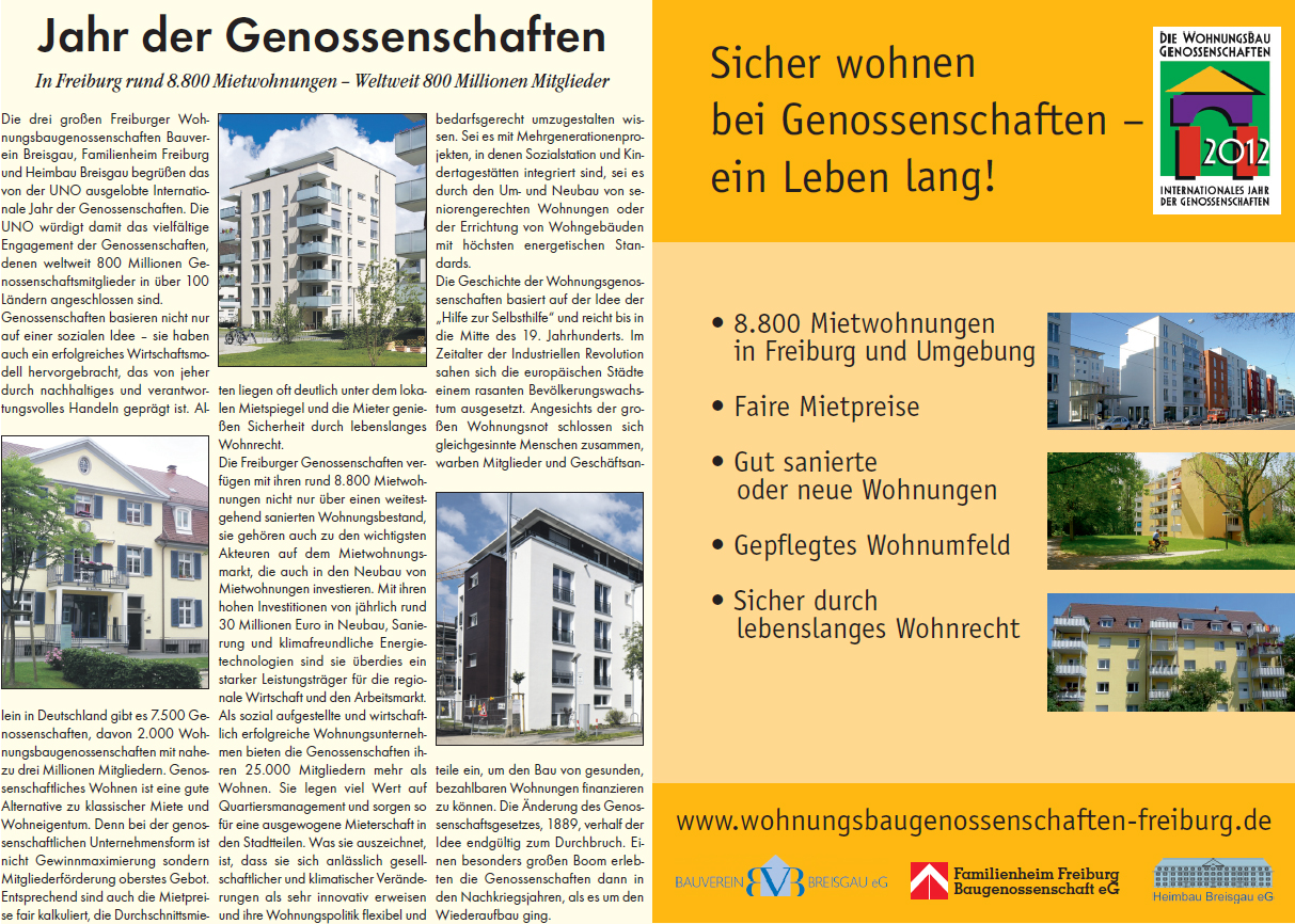 Ab März 2010 werben die Freiburger Wohnungsbaugenossenschaften - Bauverein
